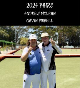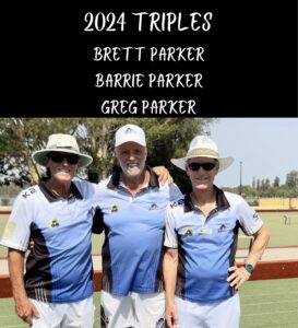 Andrew McLean and Gavin Powell 2024 Pairs Champions. The Parkers……Brett, Greg and Barrie are our 2024 Triples Champs.