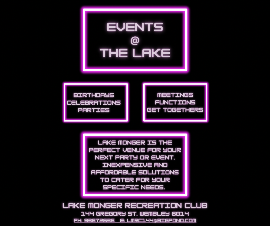 Book your next Event, Party or Function at Lake Monger Recreation Club
