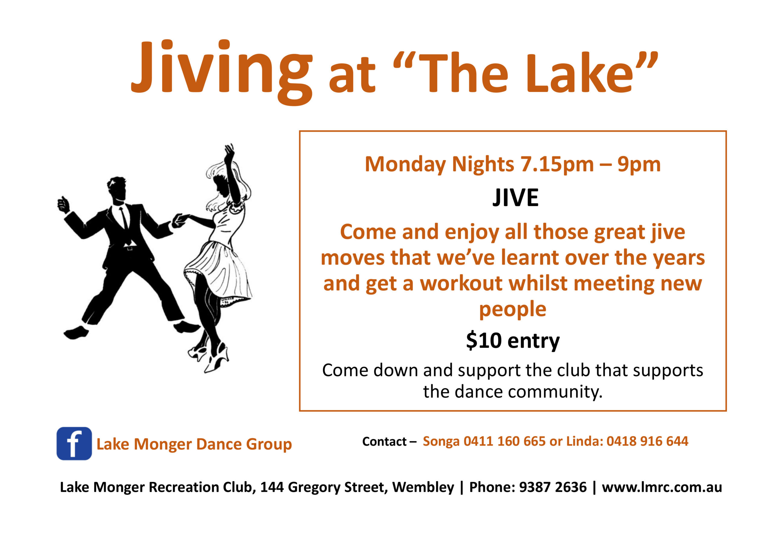 Come and enjoy all those great jive moves that we've learnt over the years and get a workout whilst you're at it! $10 entry (bar open 6pm - 10pm) Come down and support the club that supports the dance community. |