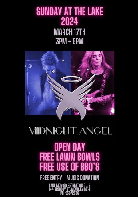 Join us for an afternoon of music with Midnight Angel. Free music, bowls and BBQ use. Grab a group of friends and come down and enjoy the beautiful setting. Feel free to bring nibbles or food for a BBQ.