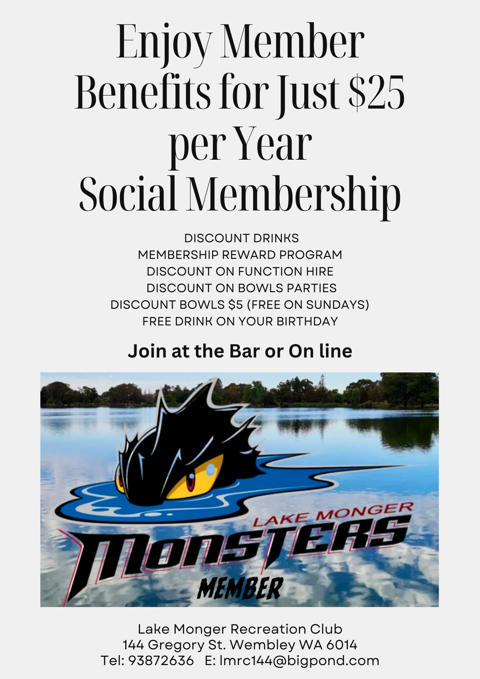 Check out our Member Benefits for all the reasons you should become a Lake Monger Social Member!