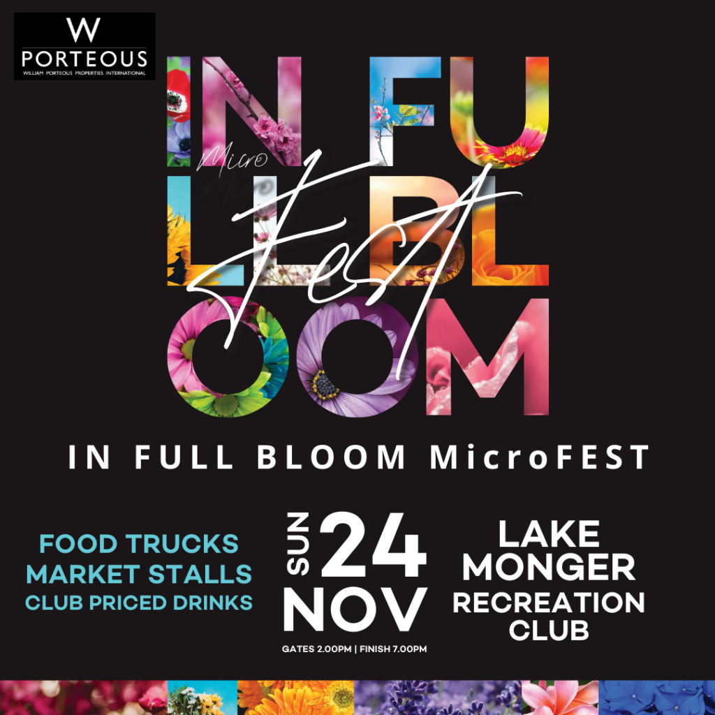 Sunday, November 24th – Lake Monger Recreation Club – 2.00pm – 7.30pmGet ready for a magical afternoon of music, food, and fun at the In Full Bloom Micro Fest! 🌿…